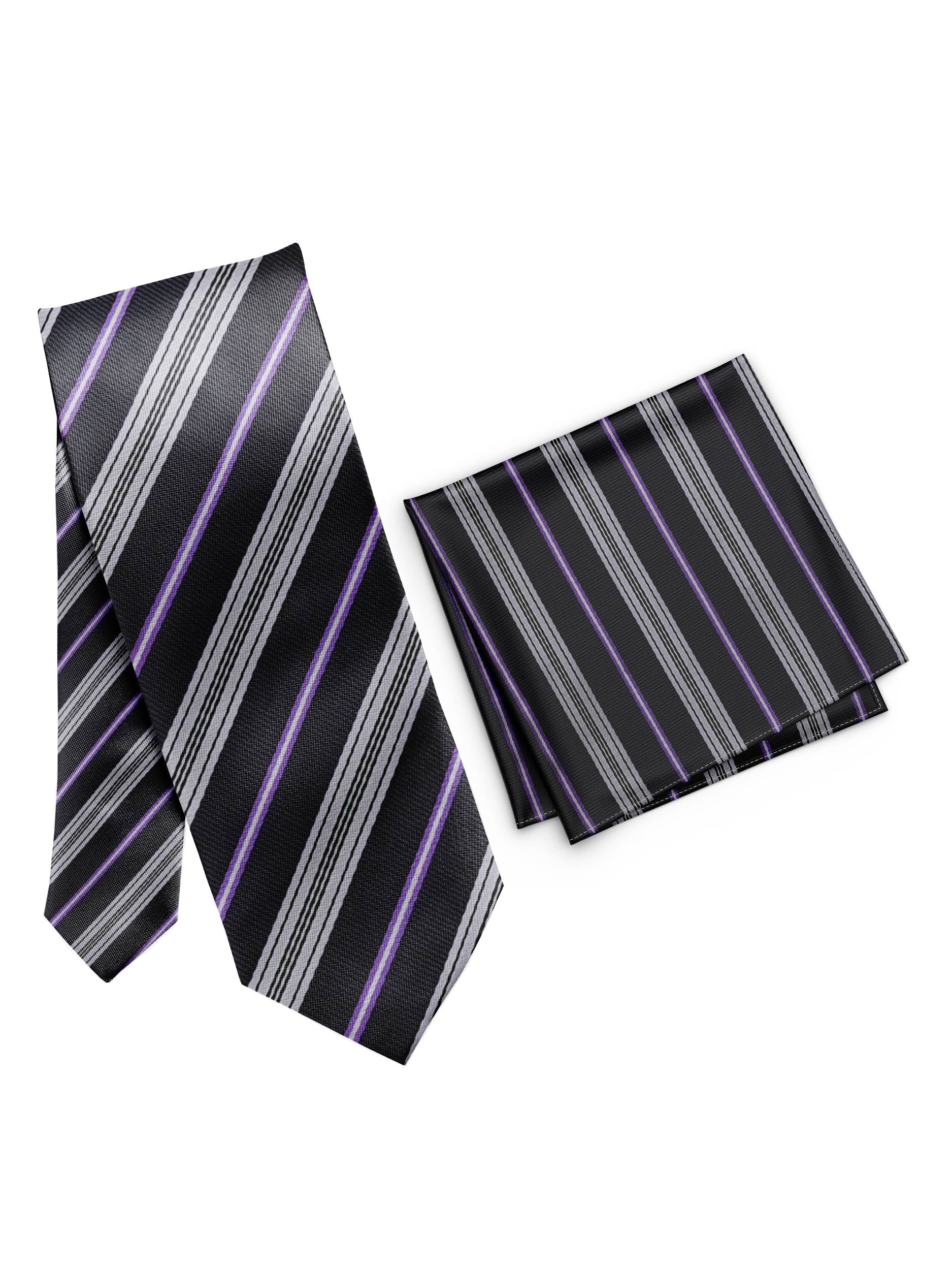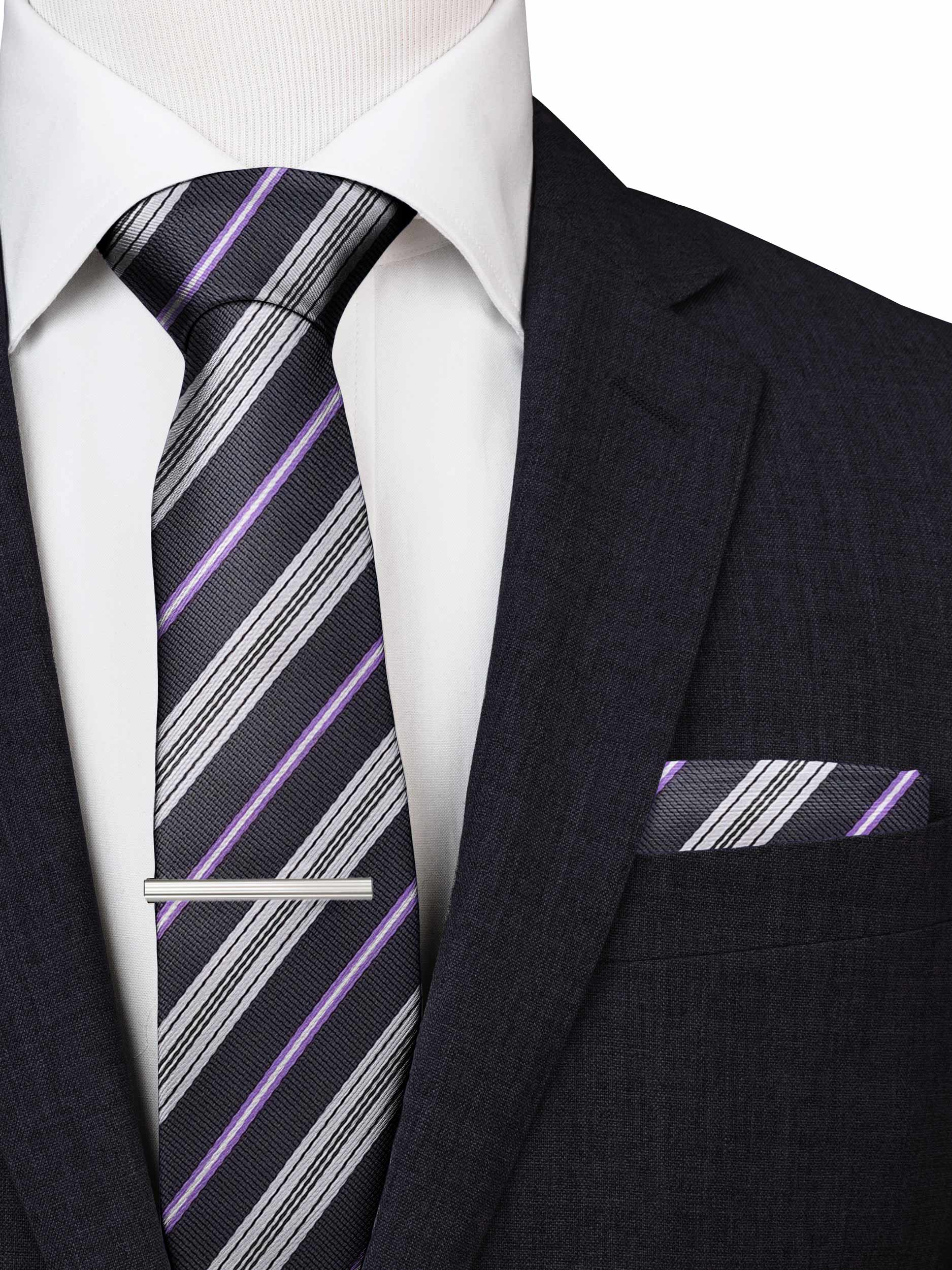 Grey & Purple Stripe Classic Tie Set