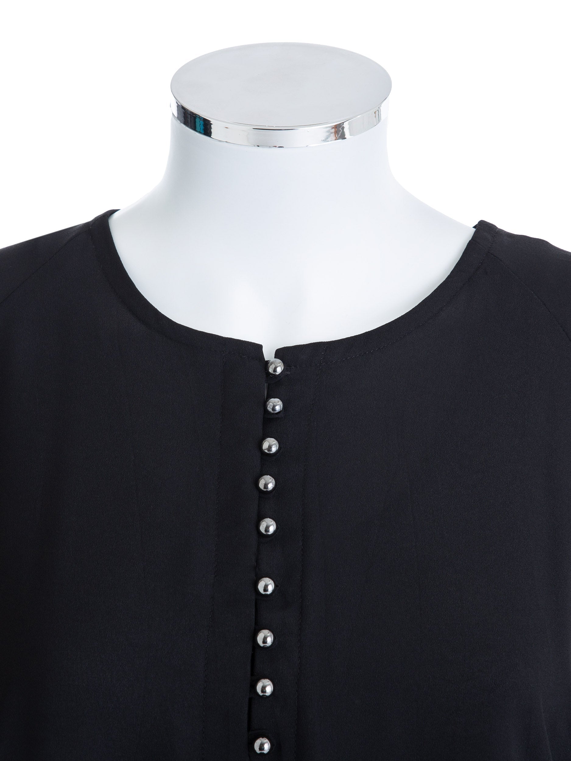 - Neckline: Round neckline with fully functional loop shank buttons