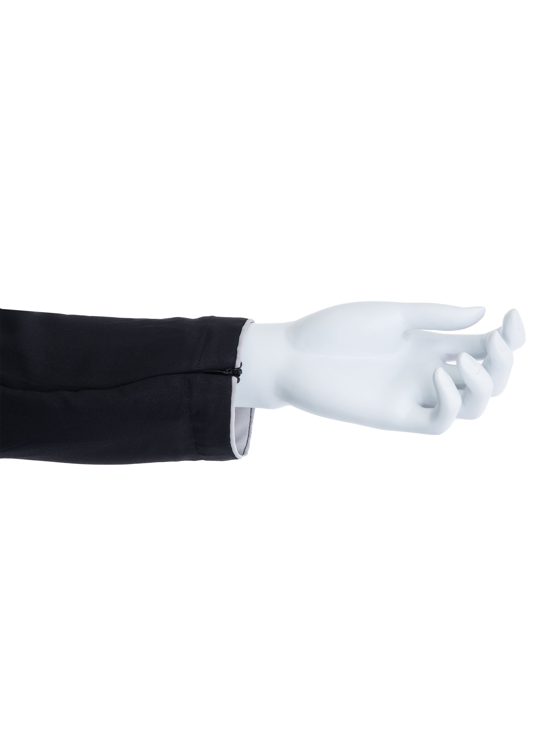 - Sleeves: Raglan sleeves with concealed zip at cuffs with light color bias piping