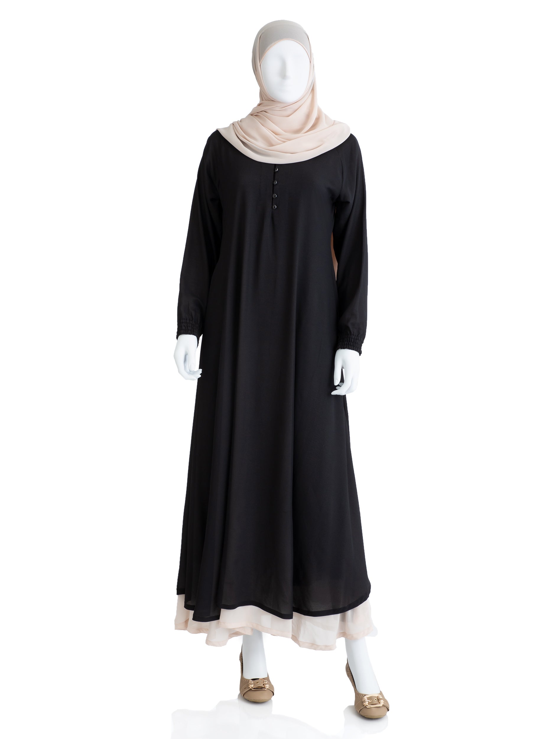 - Style: Double layer premium-abaya - black top layer and fully lined seashell white inner layer