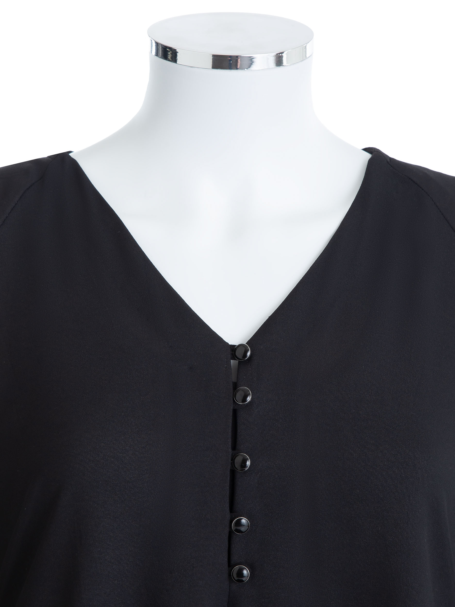 - Neckline: V neckline with fully functional loop shank buttons